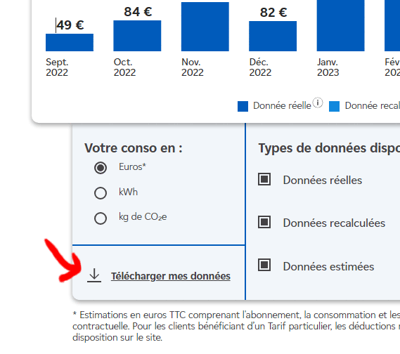 Vérifiez dans le tableau les colonnes kWh pour vous assurer que cela correspond à votre consommation.