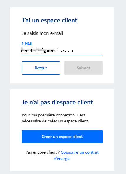 Entrez votre adresse e-mail. Si vous n'avez pas de compte, créez-en un (si vous êtes client EDF, évidemment).